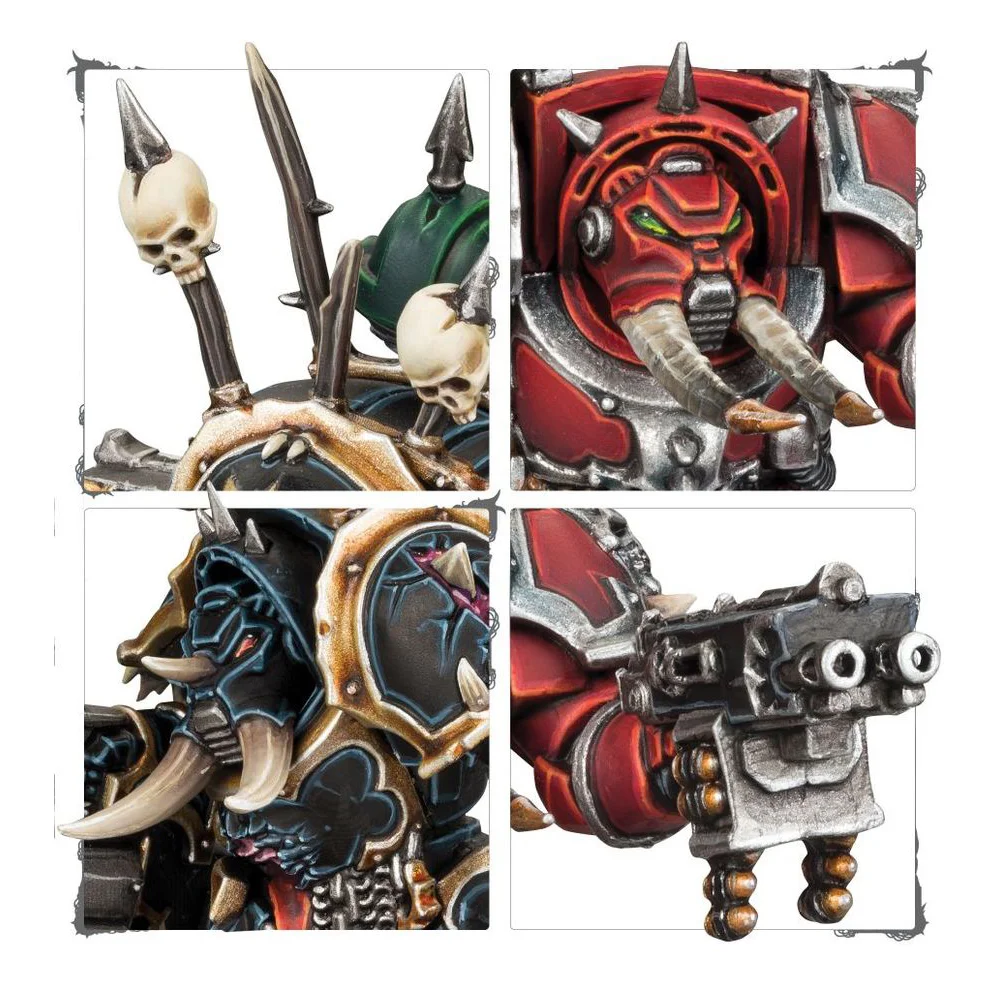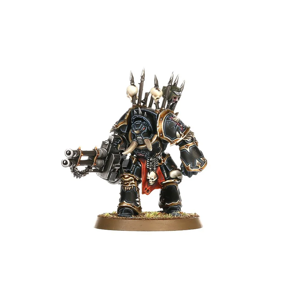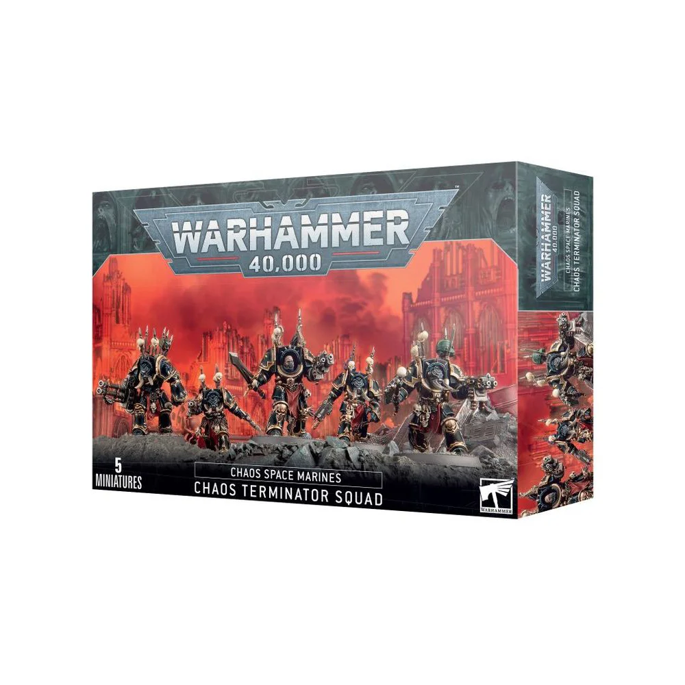 Chaos Terminators are clad in hulking, corrupted armour, and each of these murderous brutes is akin to a walking tank. Spikes and horns give them a monstrous appearance, and their powerful array of heavy firepower and devastating melee weapons can tear through elite squads and war engines alike.