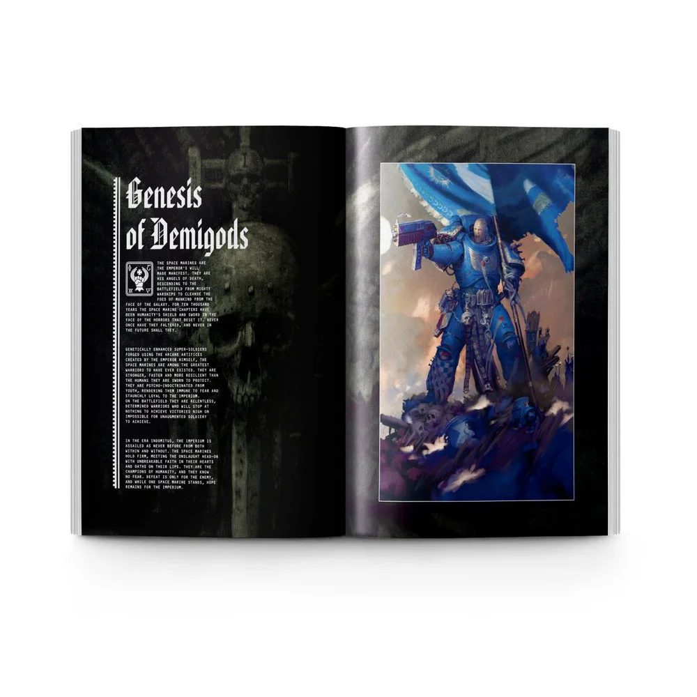 This book also contains a one-use code to unlock Codex: Space Marines content in Warhammer 40,000: The App.