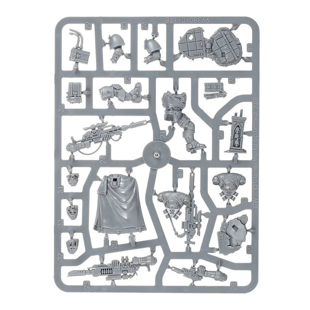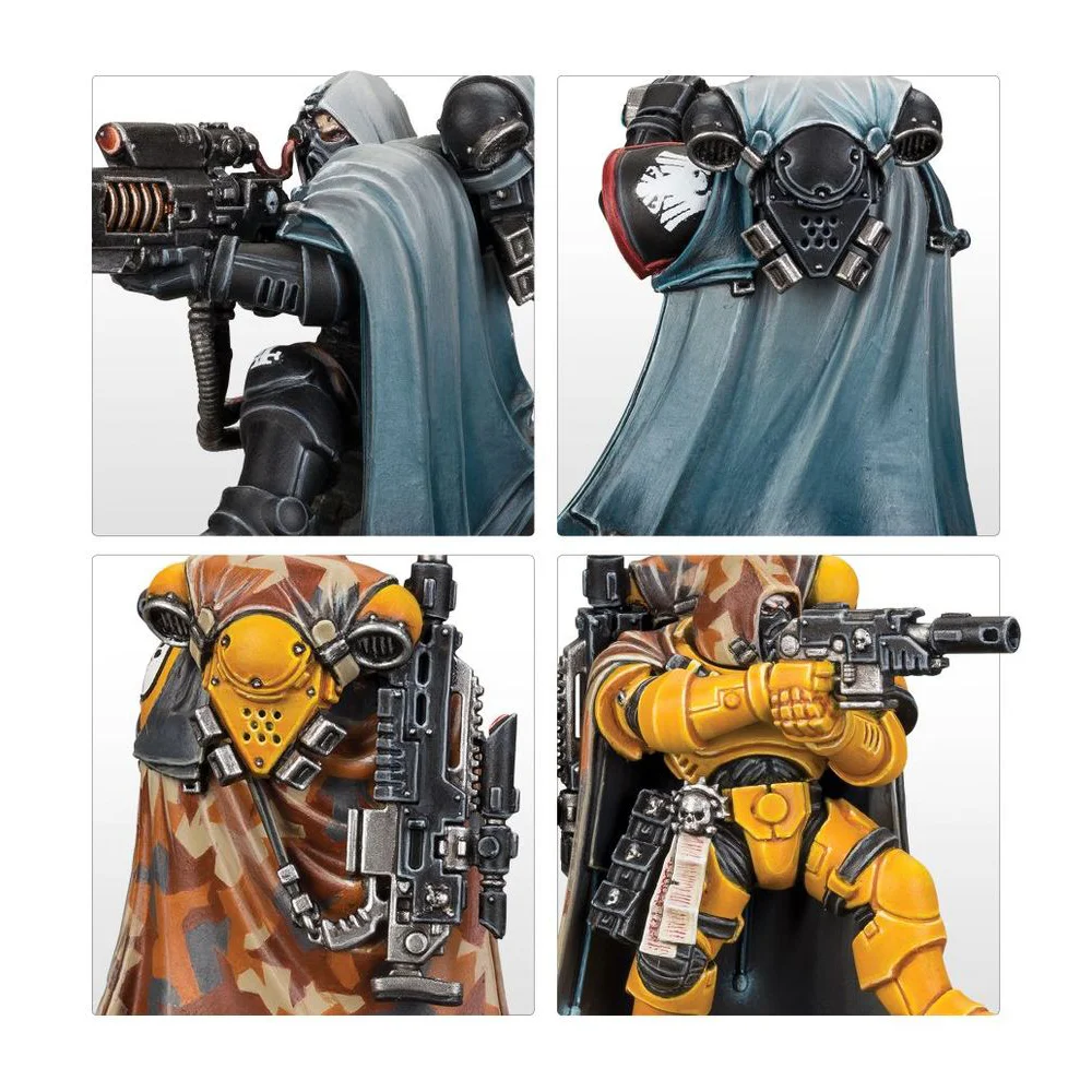 Each model in this squad can be armed either with a las fusil, which is perfect for taking out the toughest targets, or a bolt sniper rifle, which provides a choice of ammunition to suit any situation. The Sergeant can also be armed with an instigator bolt carbine. All three models can be assembled with or without helmets and the kit comes with a number of optional parts allowing you to individualise the unit.