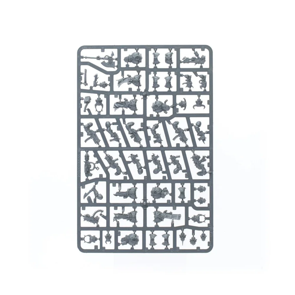 This kit builds 10 Chaos Space Marines, with your choice of weapons. The set is absolutely packed with optional extras, giving you the choice of arming every member of the squad with close-combat weapons and pistols or ranged wargear. You’ll be able to add your choice of plasma gun, flamer, meltagun, heavy bolter and missile launcher. Optional components let you build up to two Aspiring Champions, giving you the freedom to build the set as a single squad of 10 or two squads of 5. A Chaos icon, interchangeable components and optional grenades offer you even more choice, ensuring no two units need look alike. The set is even designed to be compatible with the Havocs, allowing you to mix and match heavy weapons for even more choice.