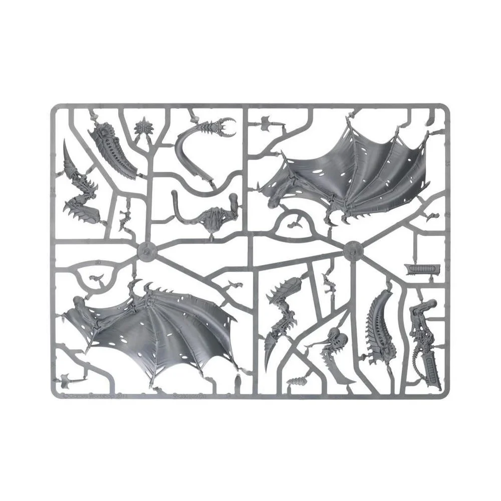 This multipart plastic kit builds one Winged Hive Tyrant, an impressive and incredibly dynamic leader-beast that can be built to take on a variety of battlefield roles. This looming creature is a fitting centrepiece for any Tyranid army – it is posed with fibrous and ragged wings extended wide, leaving only its serpent-like tail touching the ground, as if launching into flight or pouncing on its prey. The kit features a huge variety of weapons options, including two scything talons, a heavy venom cannon, a stranglethorn cannon, and a bonesword and a lash whip – as well as biomorphs like adrenal glands and toxin sacs, plus other components for customising your Winged Hive Tyrant. You can also choose to build this kit as wingless Hive Tyrant, or the insidious Swarmlord.
